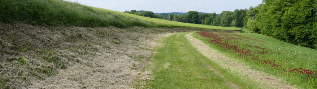 - hohes Gras nicht auf einmal, sondern in Teilflächen über das Jahr verteilt naturschonend ab Juli mähen (Sichel, Sense)