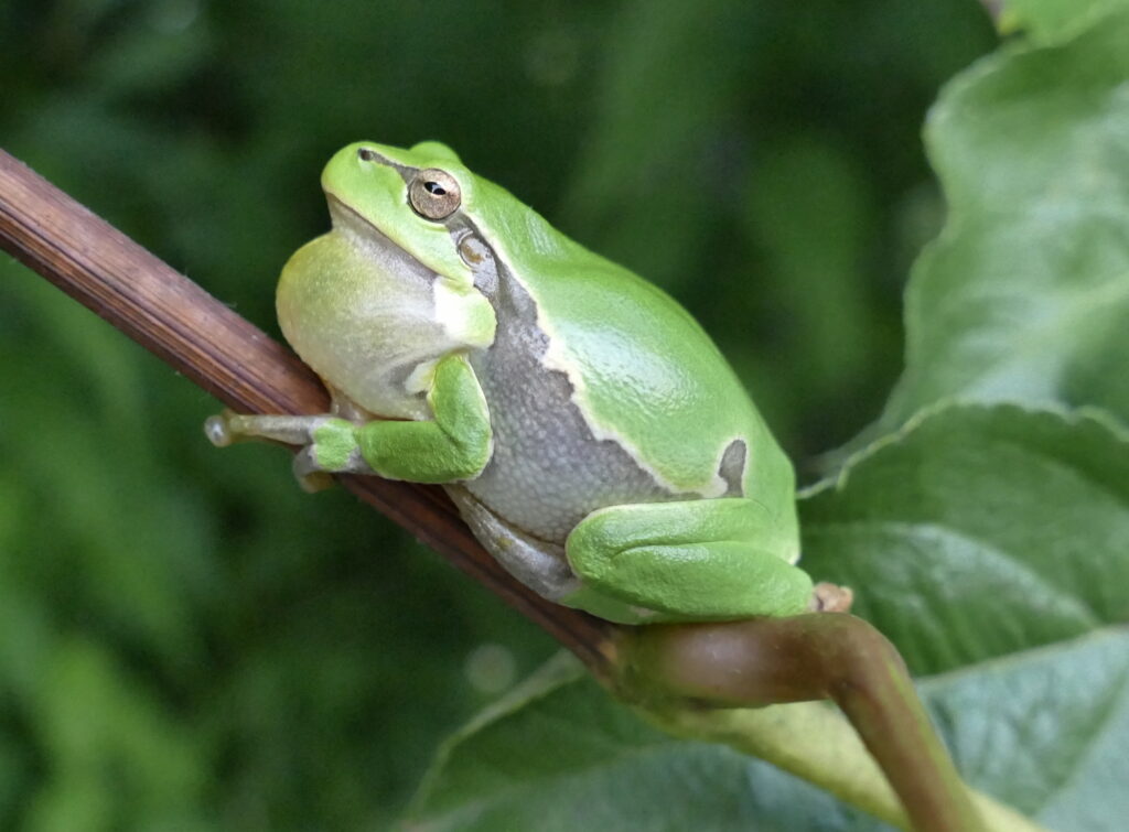 Laubfrosch in unserer Weinhecke: Diese Winzlinge haben das lauteste Organ unter den Amphibien.