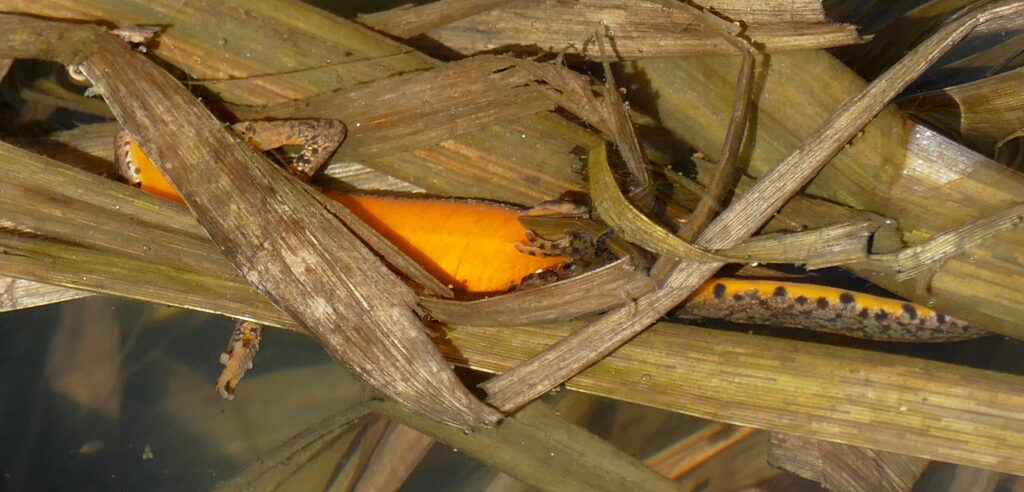 Ein seltener Alpenkammmolch in unserem Garten.