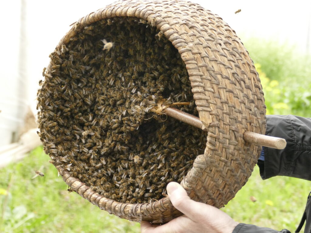 Bevor eine junge Königin nach dem Hochzeitsflug wieder in den Bienenstock zurückkehrt, zieht die alte Königin mit der Hälfte des Volkes aus.