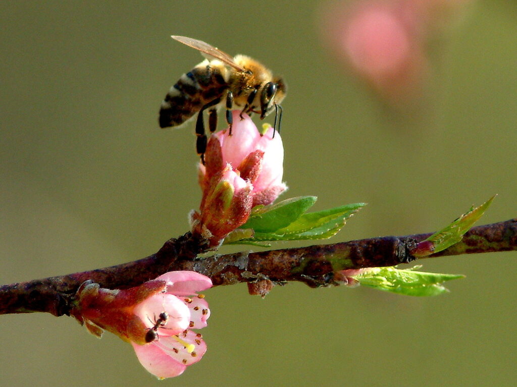 Sobald eine Pflanze zu Blühen beginnt, sind auch die Honigbienen schon zur Stelle.