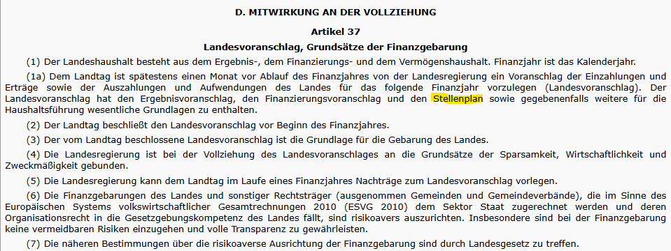 Insgesamt werden Personalaufwände somit sowohl haushaltsrechtlich (Ergebnis‑ und Finanzierungshaushalt) als auch personalwirtschaftlich (Stellenplan, Funktionsgruppen, Gehaltsbänder) berücksichtigt, sodass der Landtag nicht nur die Höhe der Personalkosten, sondern auch deren strukturelle Verankerung im Verwaltungsapparat steuern und kontrollieren kann.